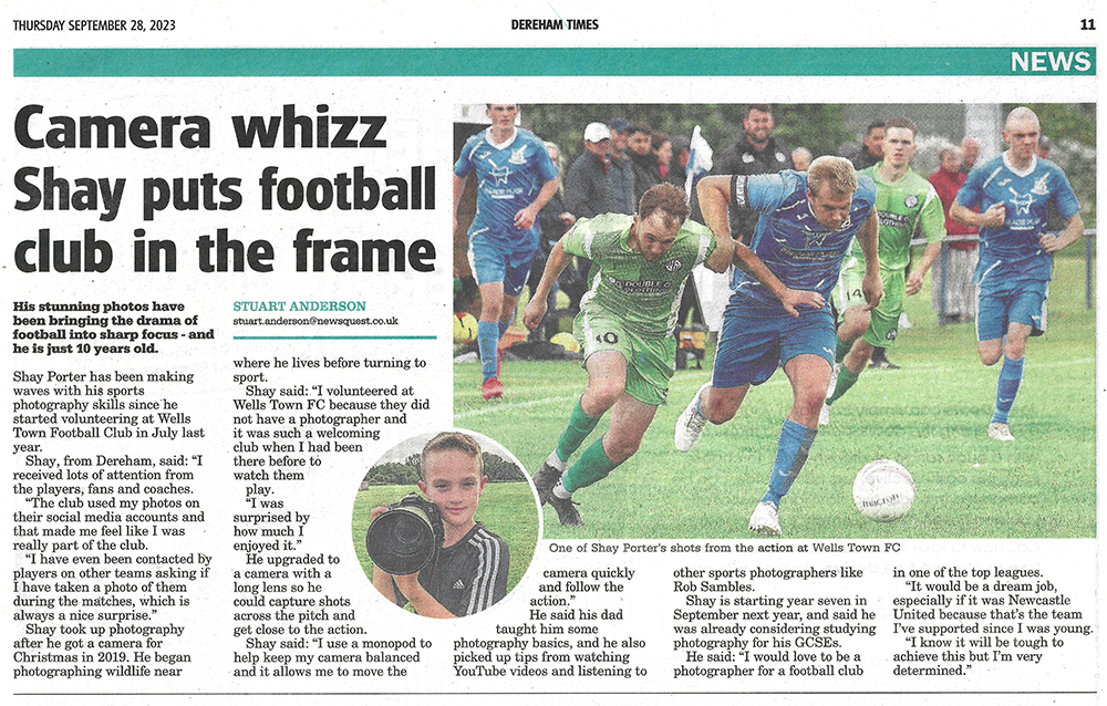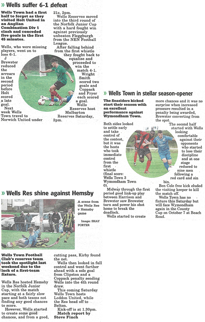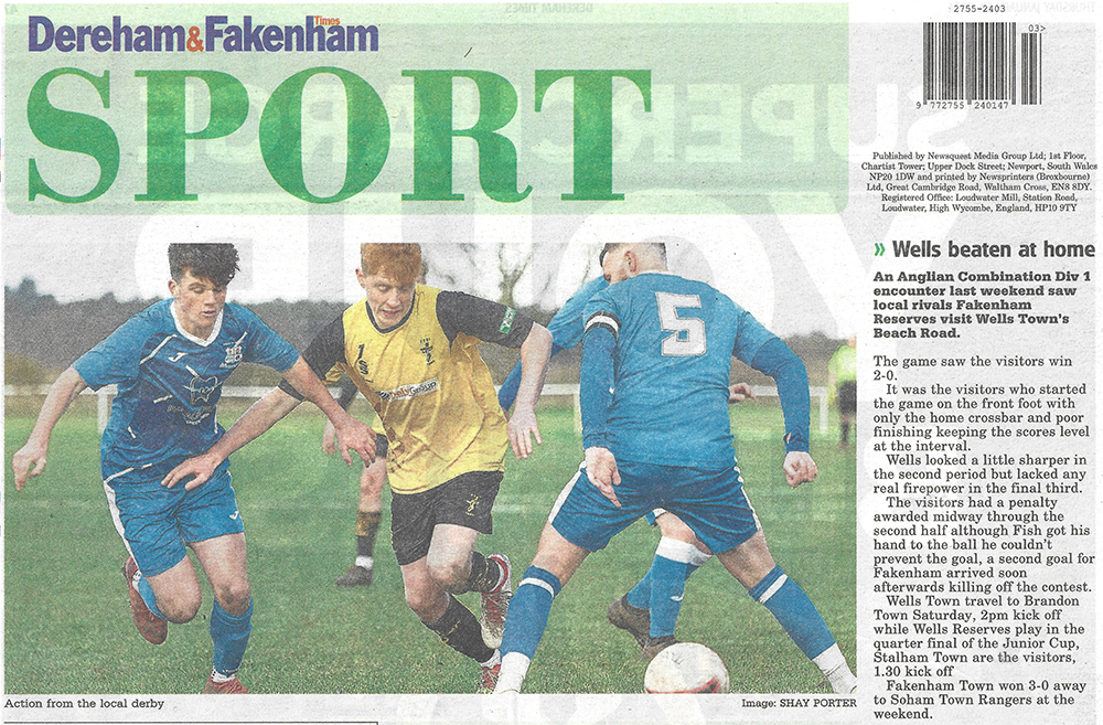 My photography regular features alongside the match reports for Wells Town Football Club in the Dereham & Fakenham Times.